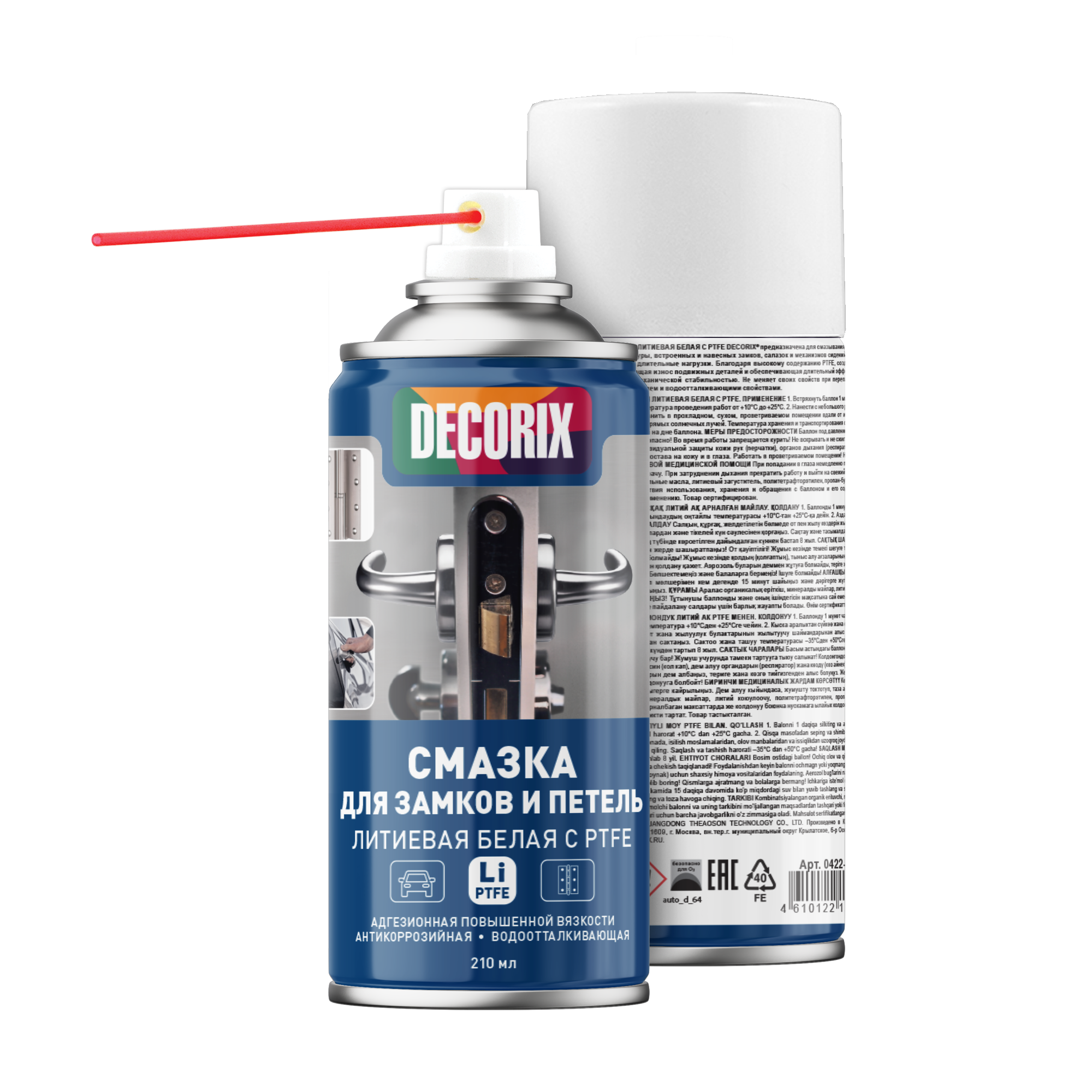 Смазка для замков и петель адгезионная литиевая белая с PTFE DECORIX 210мл *1/24