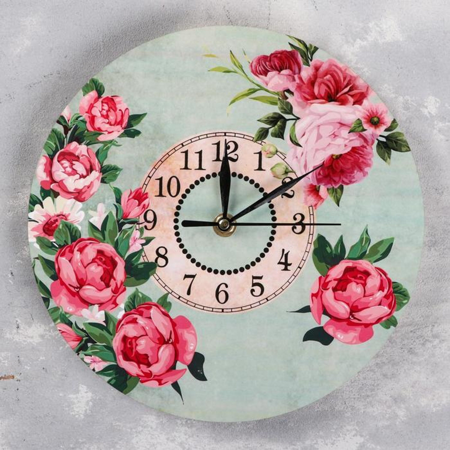 Часы настенные "Пионы", d=23.5. плавный ход, стрелки микс 5517342