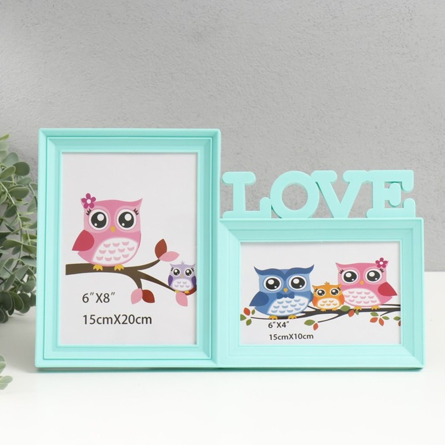 Фоторамка коллаж на 2 фото (1-13х18 см, 1-10х15 см) 34х22 см, бирюзовый 10115291