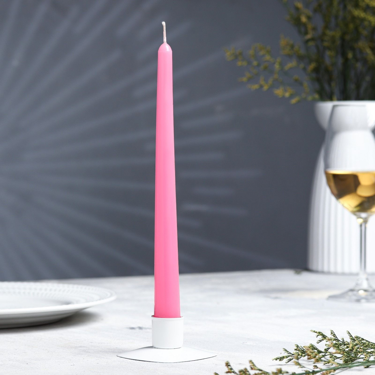 Свеча античная, 2,3х 24,5 см, 5 ч, 55 г, розовая 4900667