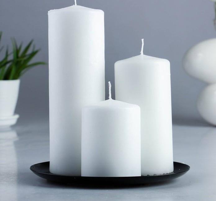 Набор свечей белый + тарелка 1612474