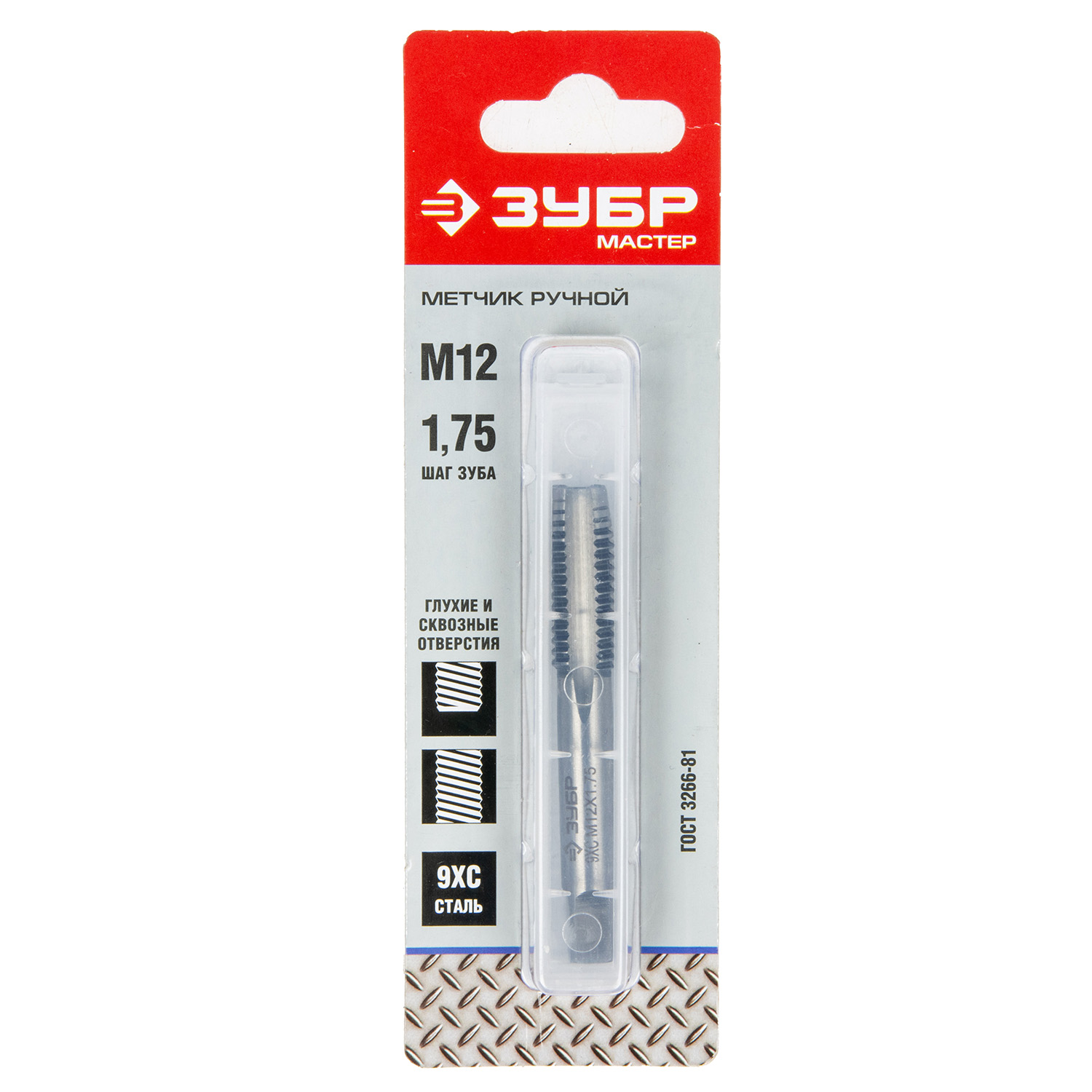 Метчик ручной М12х1,75мм, сталь 9ХС ЗУБР *1/60