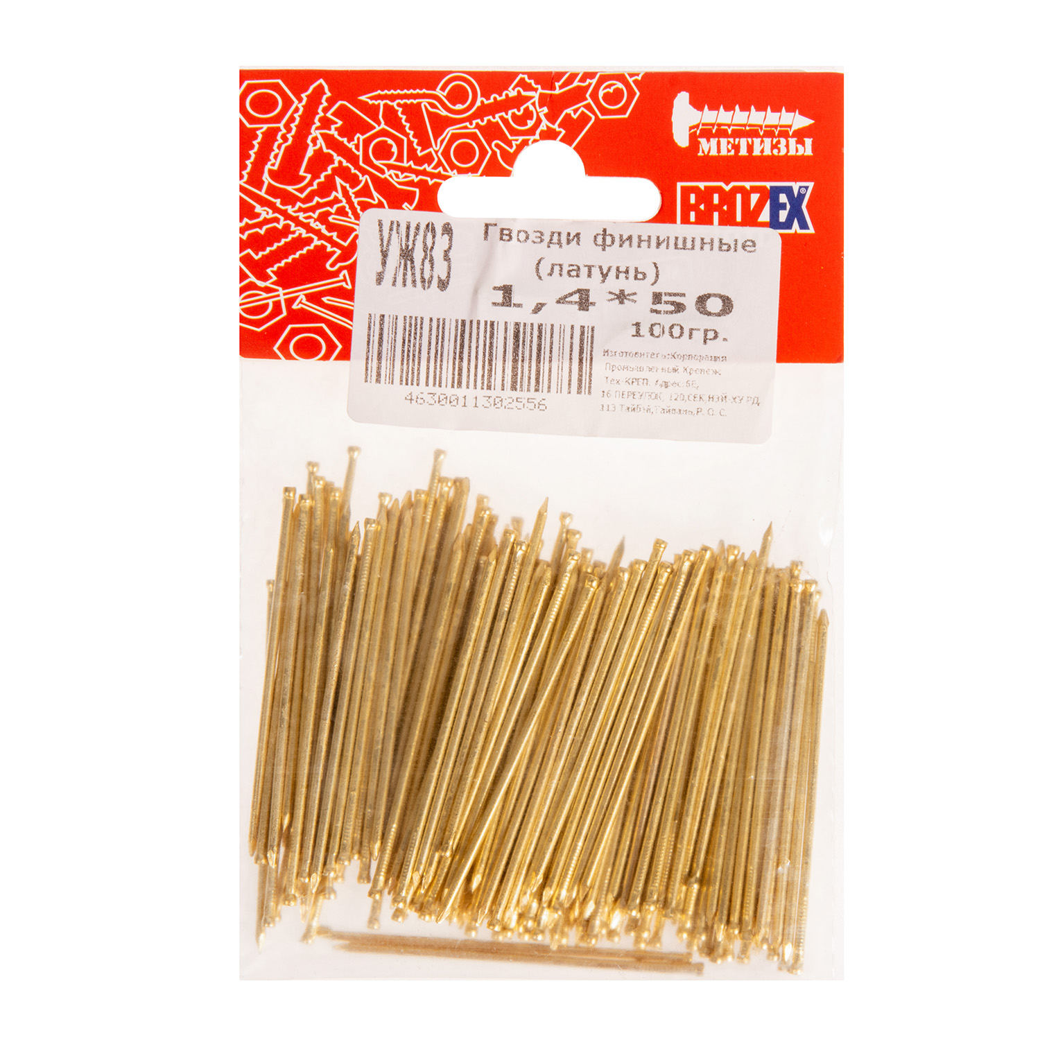 Гвозди финишные 1.4х50 мм BROZEX, 0.1 кг, латунь