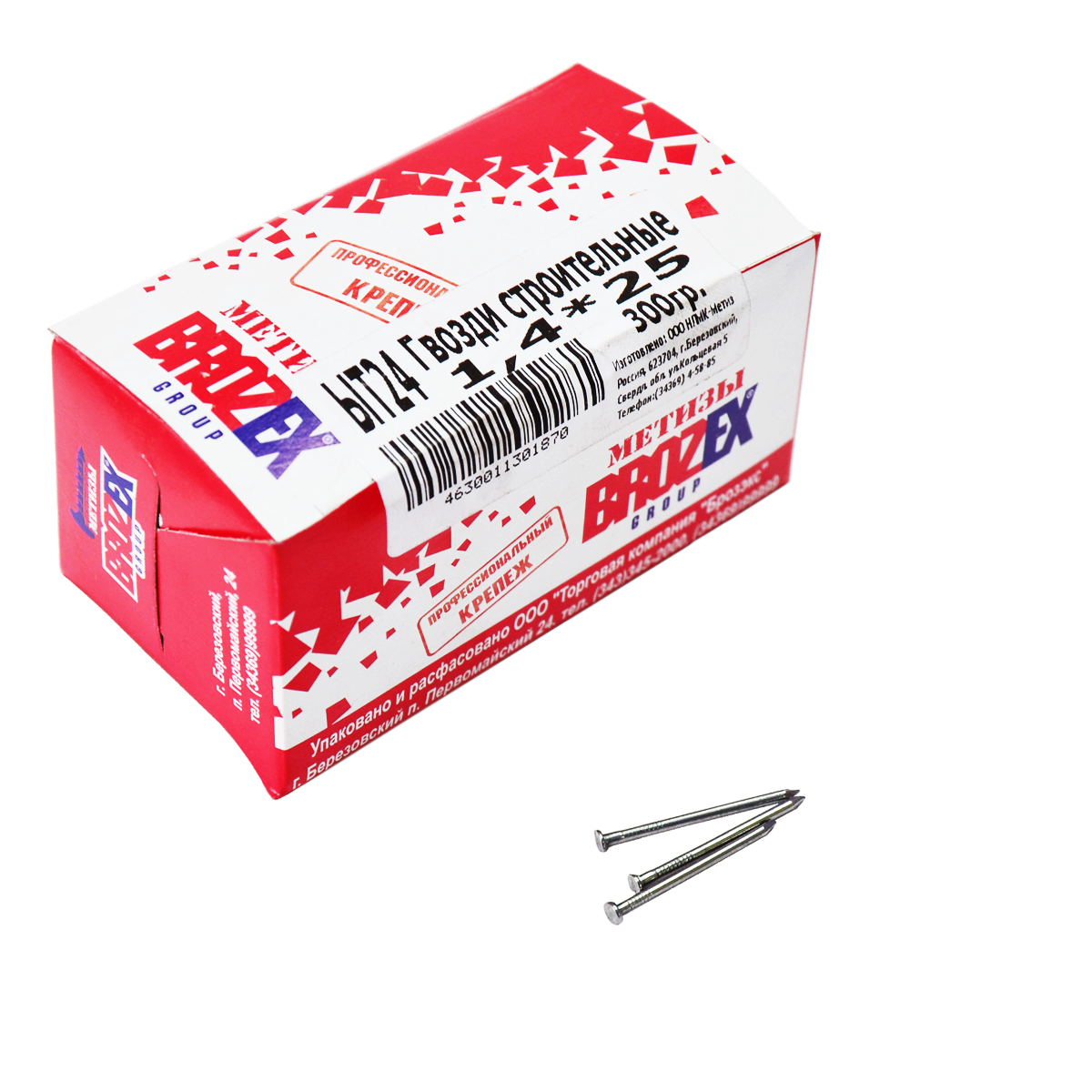 Гвозди строительные 1.4х25 мм BROZEX, 0.3 кг