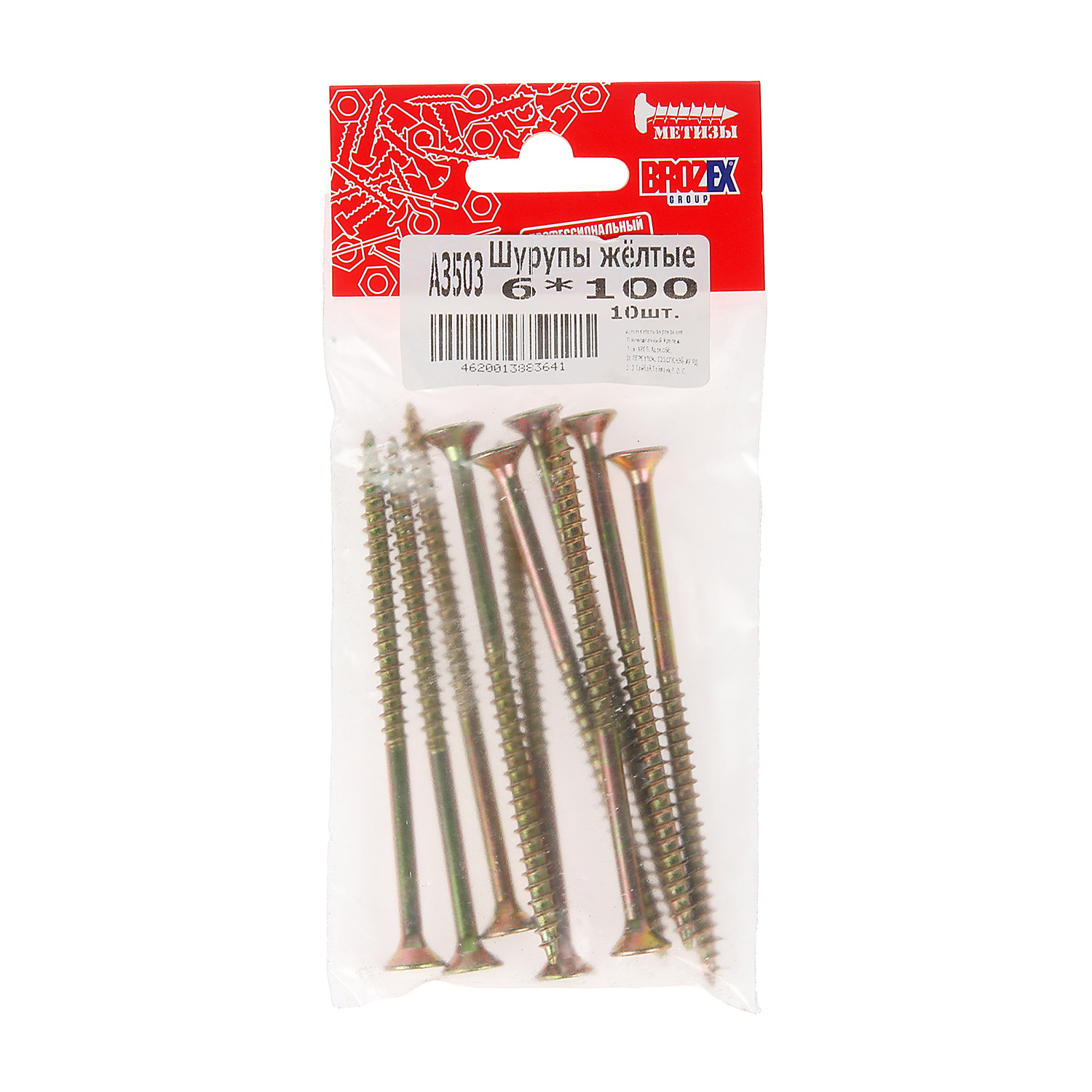 Шурупы жёлтые BROZEX пакет 6*100 (10шт) *10/100