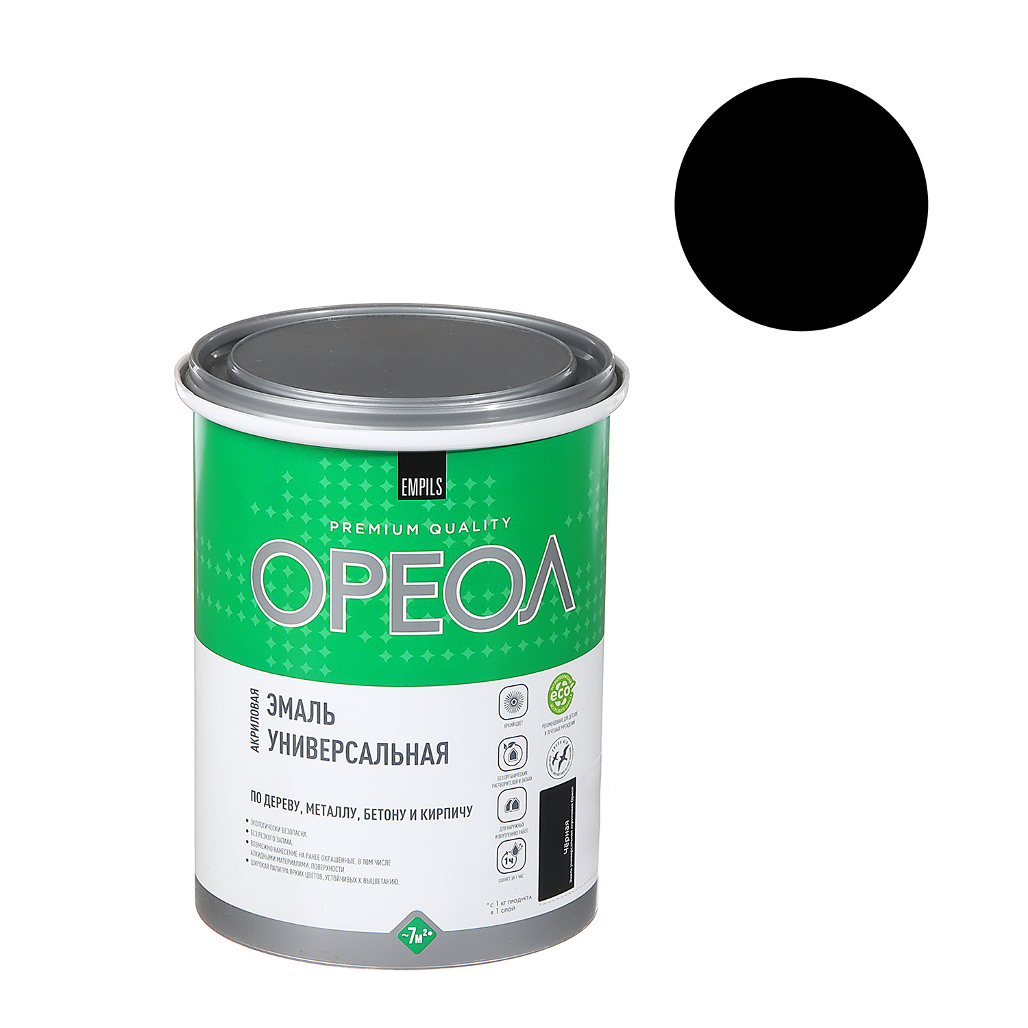 Эмаль акриловая черная 1 кг Ореол *1/6/336