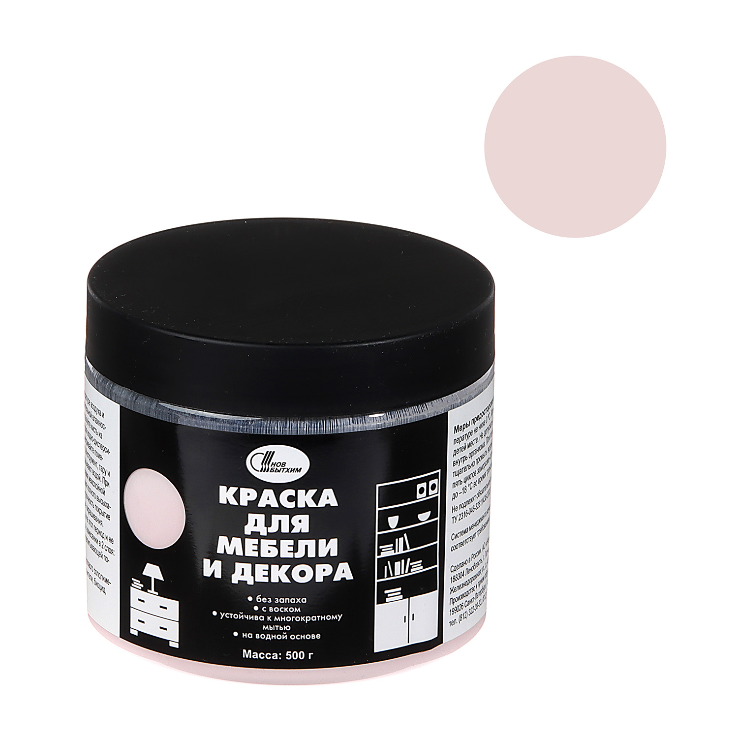 Краска акриловая для мебели и декора Нежно-розовый 0,45 кг Новбытхим *1/6