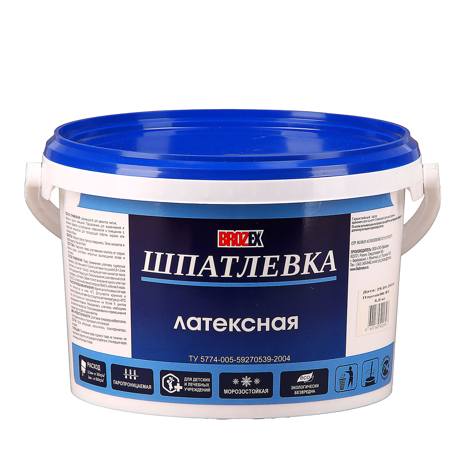 Шпатлевка латексная BROZEX 5 кг используется при ремонте жилых, офисных и других помещений. Образует ровную прочную поверхность. Легко наносится и обрабатывается.
