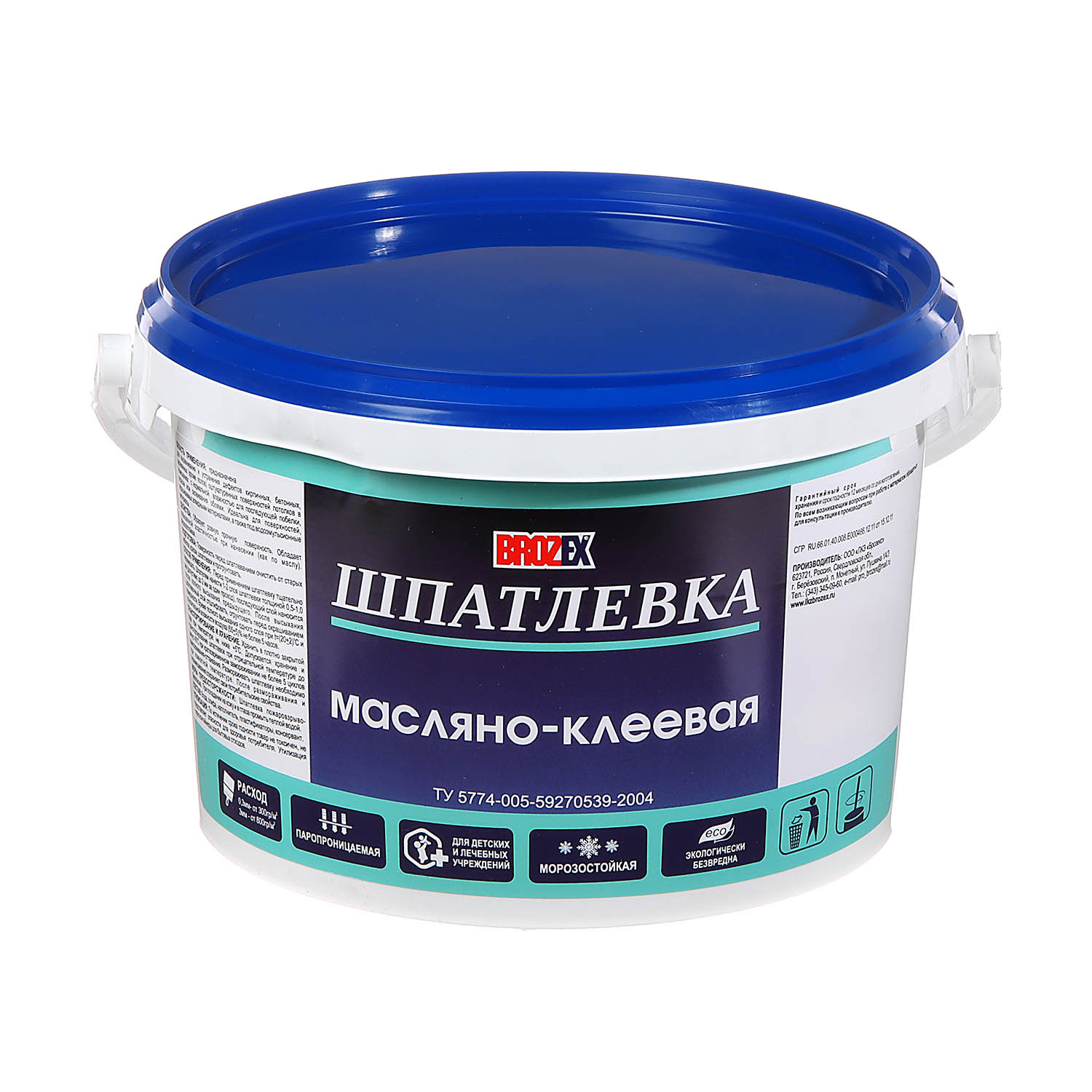 Шпатлевка масляно-клеевая BROZEX 5 кг образует ровное прочное покрытие. Обладает повышенной эластичностью при нанесении. Идеальна для поверхностей, окрашиваемых алкидными и водоэмульсионными составами.