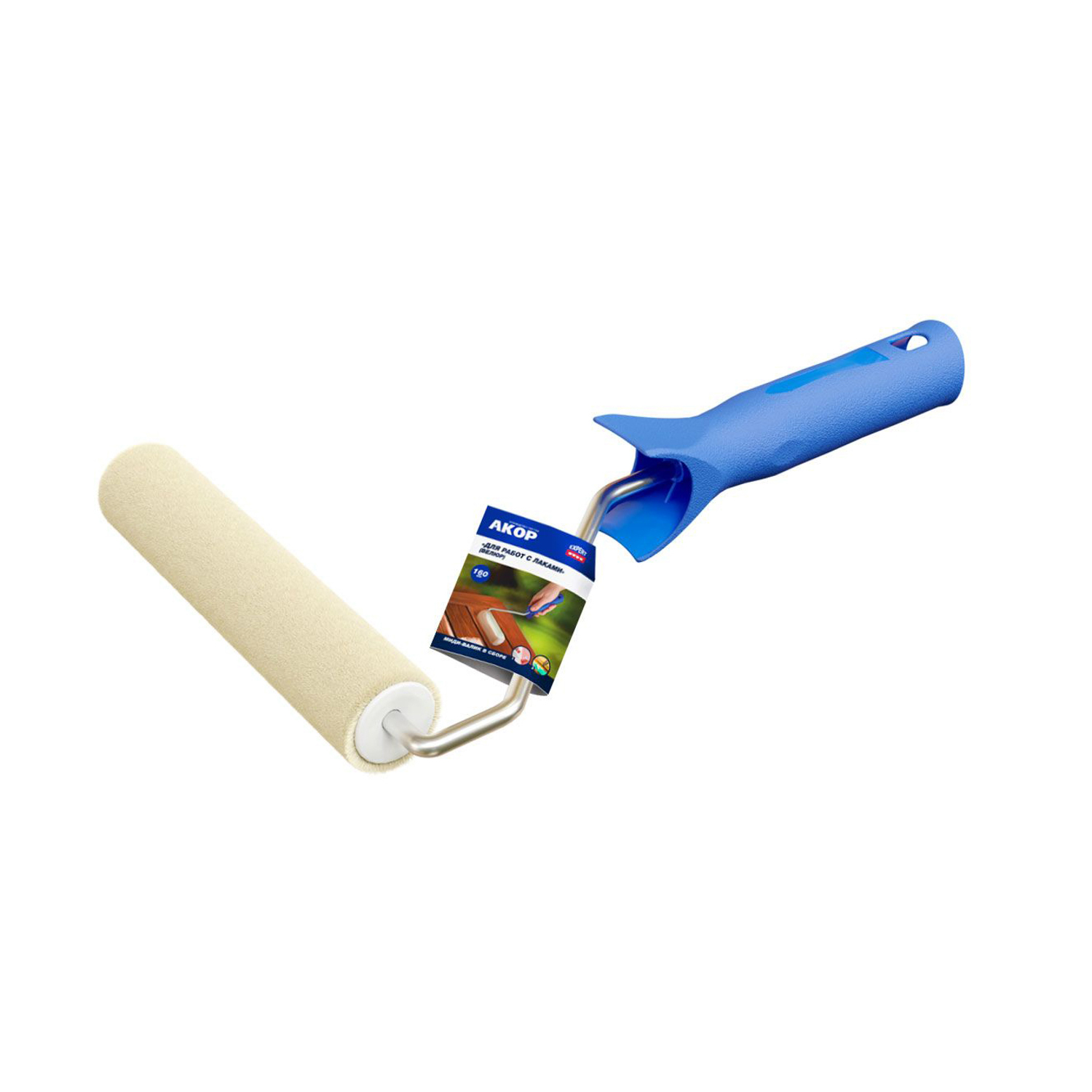 Валик-миди 120мм в сборе д/работ с лаками,d-25мм,ворс5мм,ручка30см,велюр (Акор) *1/45
