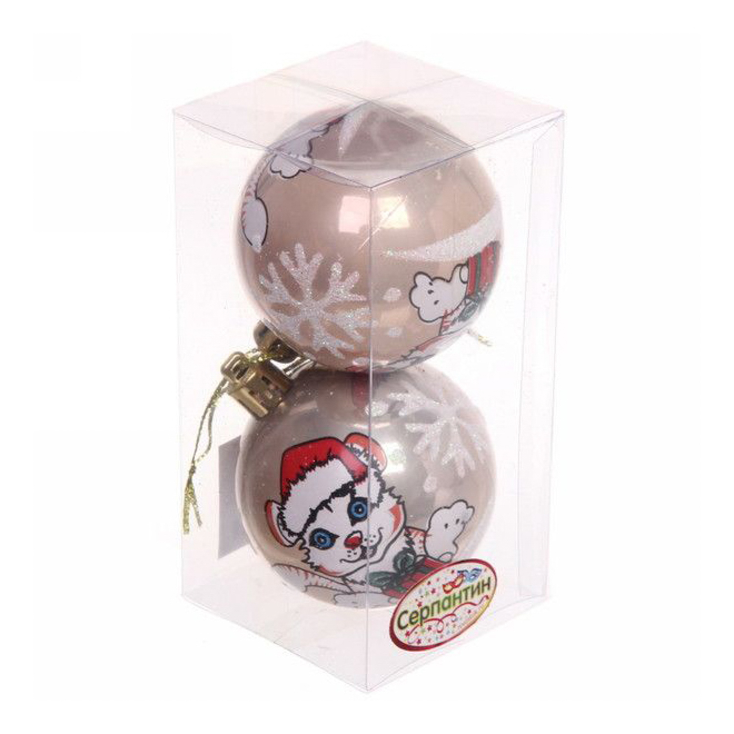 Новогодние шары "Тигрёнок" 8 см (набор 2шт), шампань