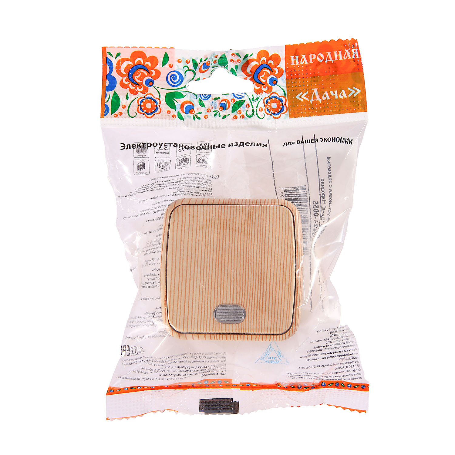 Выключатель Дача ОП 1кл. сосна с подсветкой 10А Народная SQ1824-0055