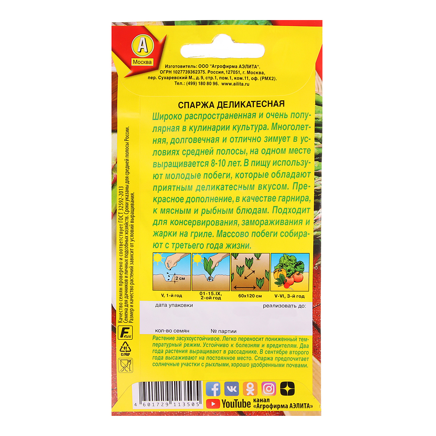 Семена Спаржа Деликатесная 0,5гр Аэлита цв *10/500