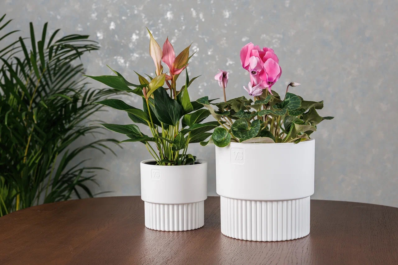 Кашпо пластм. "Бостон" 1,6л d верха 137мм h132мм со вставкой Белый АМБ-1,6-01 ("VipSet") *1/10