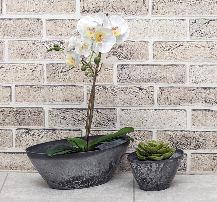 яяяКашпо пластм. "Микрит" 1.4л овал. 210х135 h110мм Серый слайн М3108 ("М-П.")*1/16