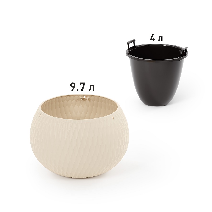 Кашпо пластм. подвесное "Жемчужина" 9,7л d 290мм h195мм, вставка 4л, металл.подвес Беж. М8723 *1/4
