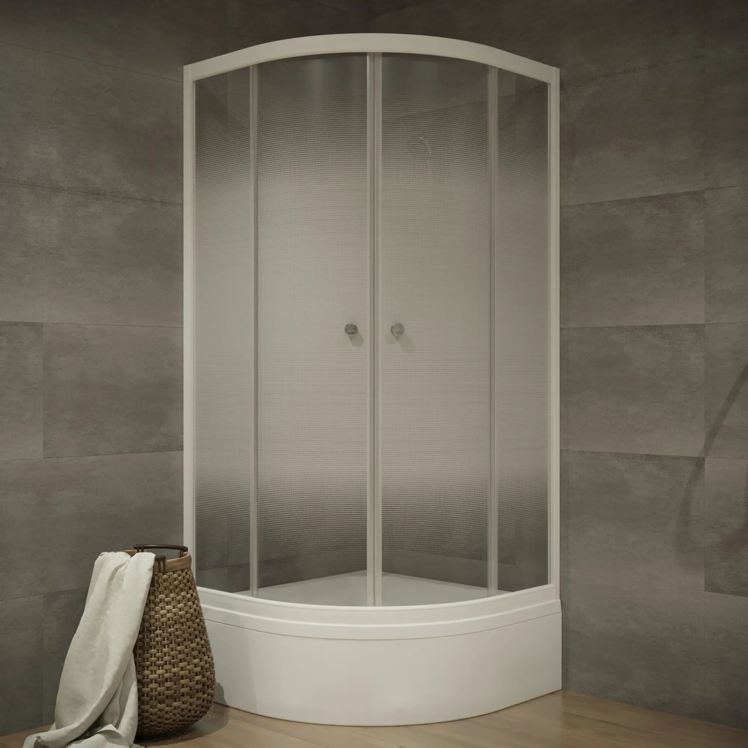 Душевой уголок 90*90 "Лайт В" поддон средний, 1/4 круга, Белый (3 места+сифон E410CL)