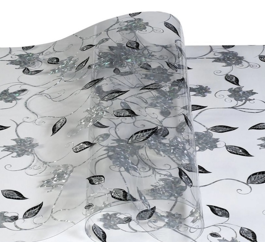 Клеёнка без основы "термо" гладкая "Листочки" шир.80см,толщ.0,65мм GW-52047 "ТермоКлеёнка" *20