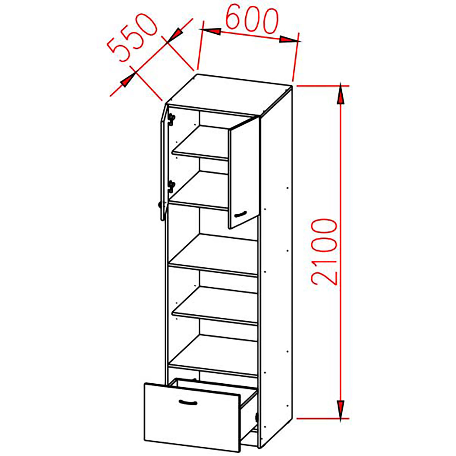 Пенал 600х2100х550 мм BROZEX-WOOD Liberty, для духового шкафа и СВЧ, белый