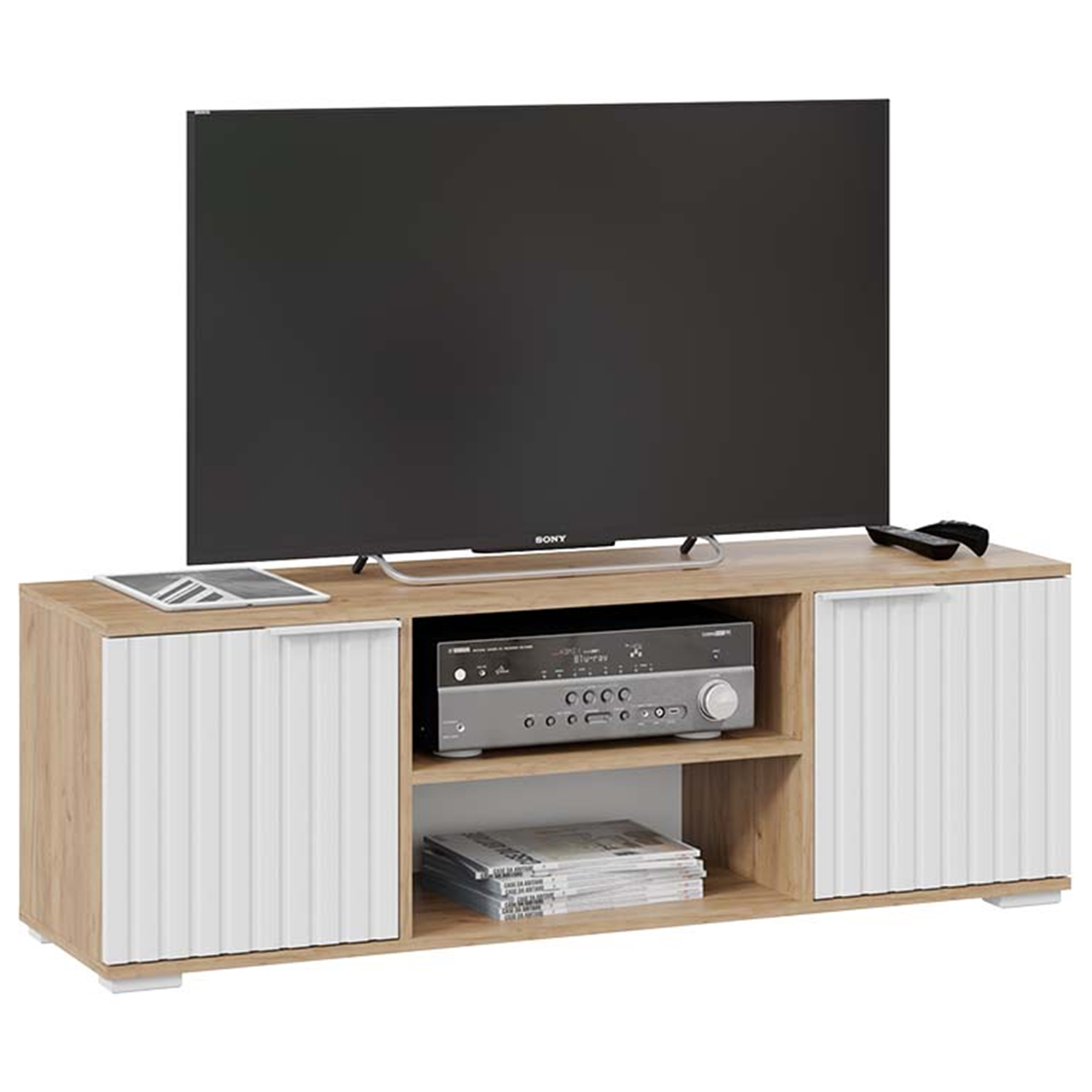 Тумба под ТВ 1711*374*452 Дуб Крафт золотой/Белый матовый Хилтон ТриЯ*1