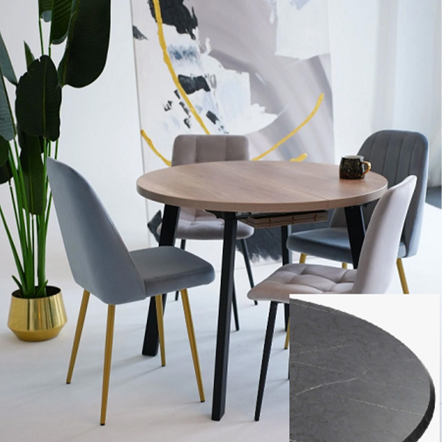 Стол обеденный круглый раздв.ГЕЙТ d950(+300)мм h750мм КАСПИЙ темный+4 опоры мат.черный *1