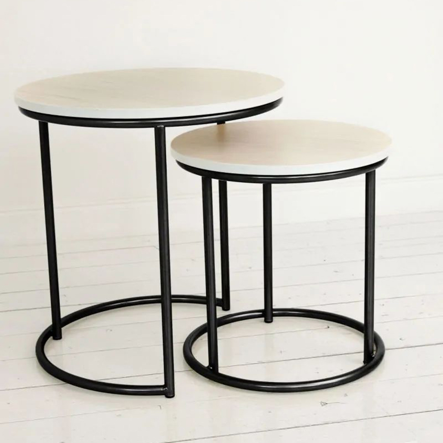 Журнальный стол МАТРЕШКА комплект столешниц 2 шт.ЛДСП Дуб краф+Подстолье труба КРУГЛАЯ ЧЕРНАЯ*1