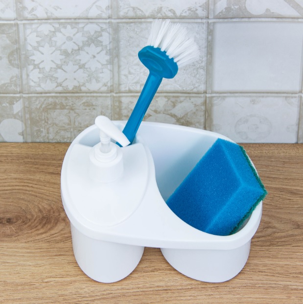 Подставка для моющих средств кухонная пластм. с Дозатором 0,25л 180х125х160мм М1149 ("М-Пл.") *1/10