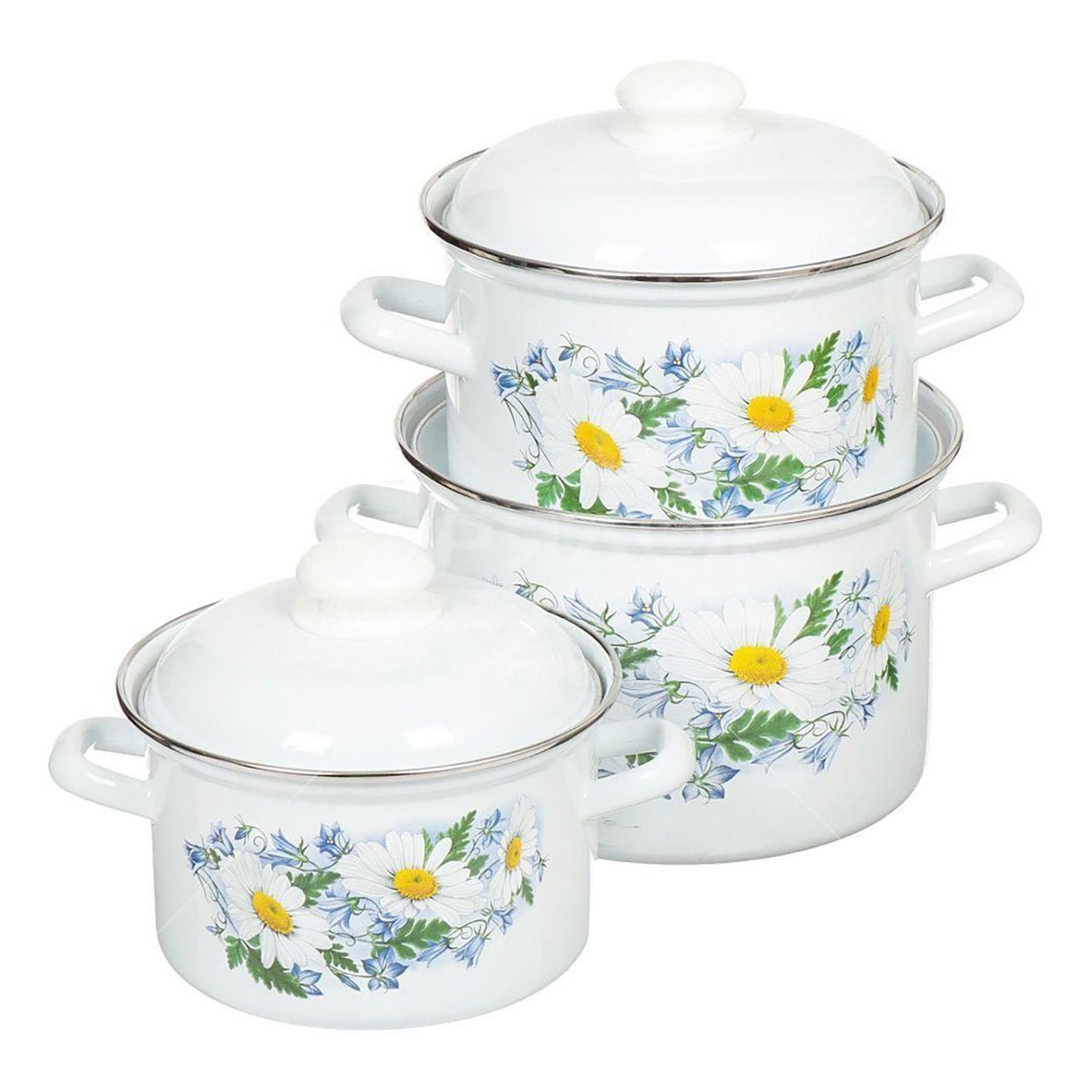 Набор кастрюль эмалированных: 2,0л+3,5л+5,0л рис. "Ромашковое поле" С-207АП2/4 "Лысьвенские ЭМАЛ"*1