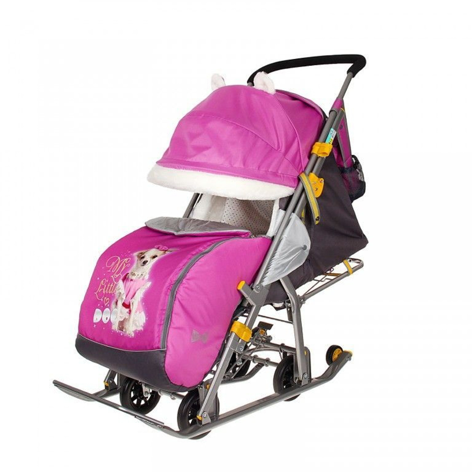 Санки-коляска детские "Ника Детям 7-2" орхидея (сиреневый) рис."щенок" плоск.полозья/колеса НД7-2 *1
