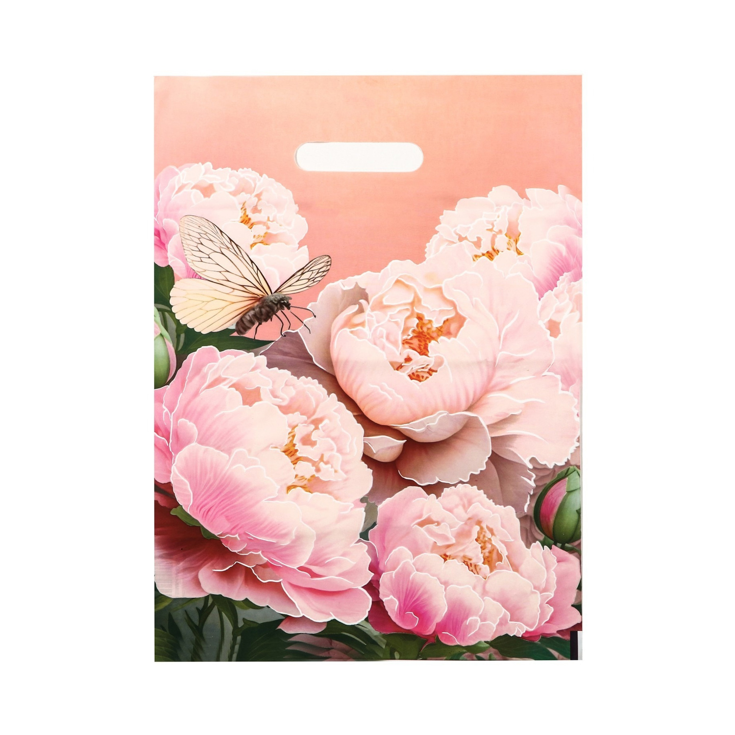 Пакет полиэтиленовый с вырубной ручкой "Нежные пионы", 30х40 см, 50 мкм 9559544
