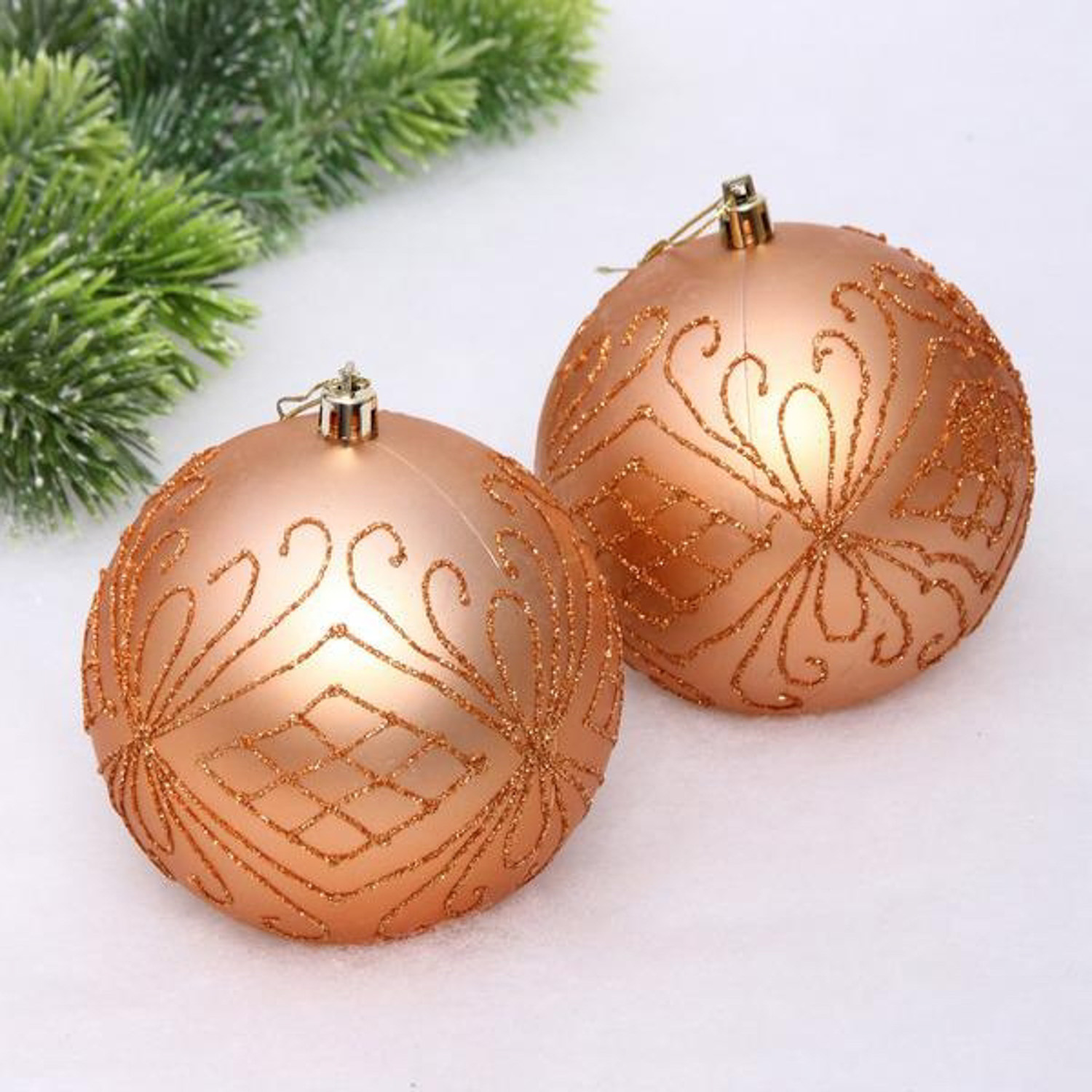 Новогодние шары 10 см (набор 2 шт) "Загадочная мечта", янтарь