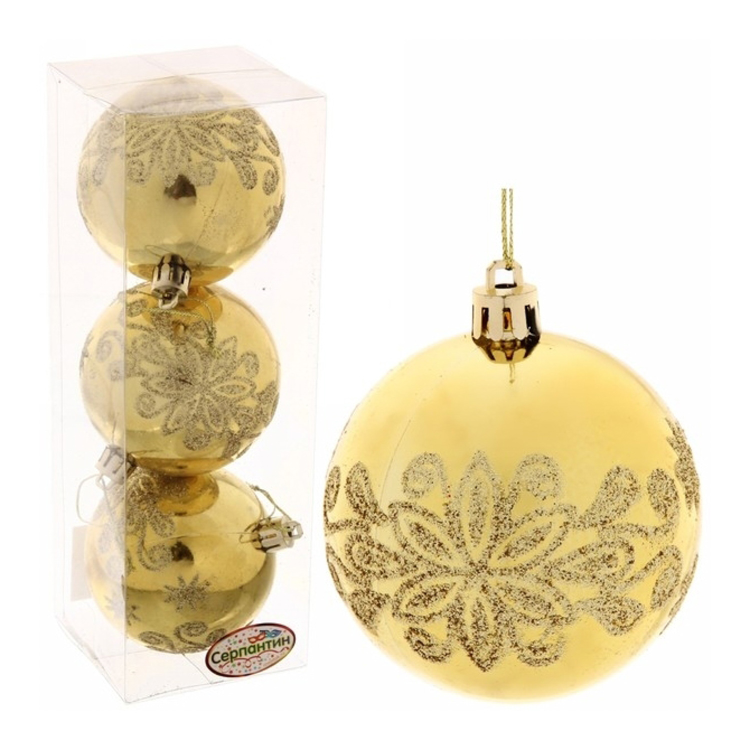 Новогодние шары 7см (набор 3 шт) "Павлиний хвост", золото
