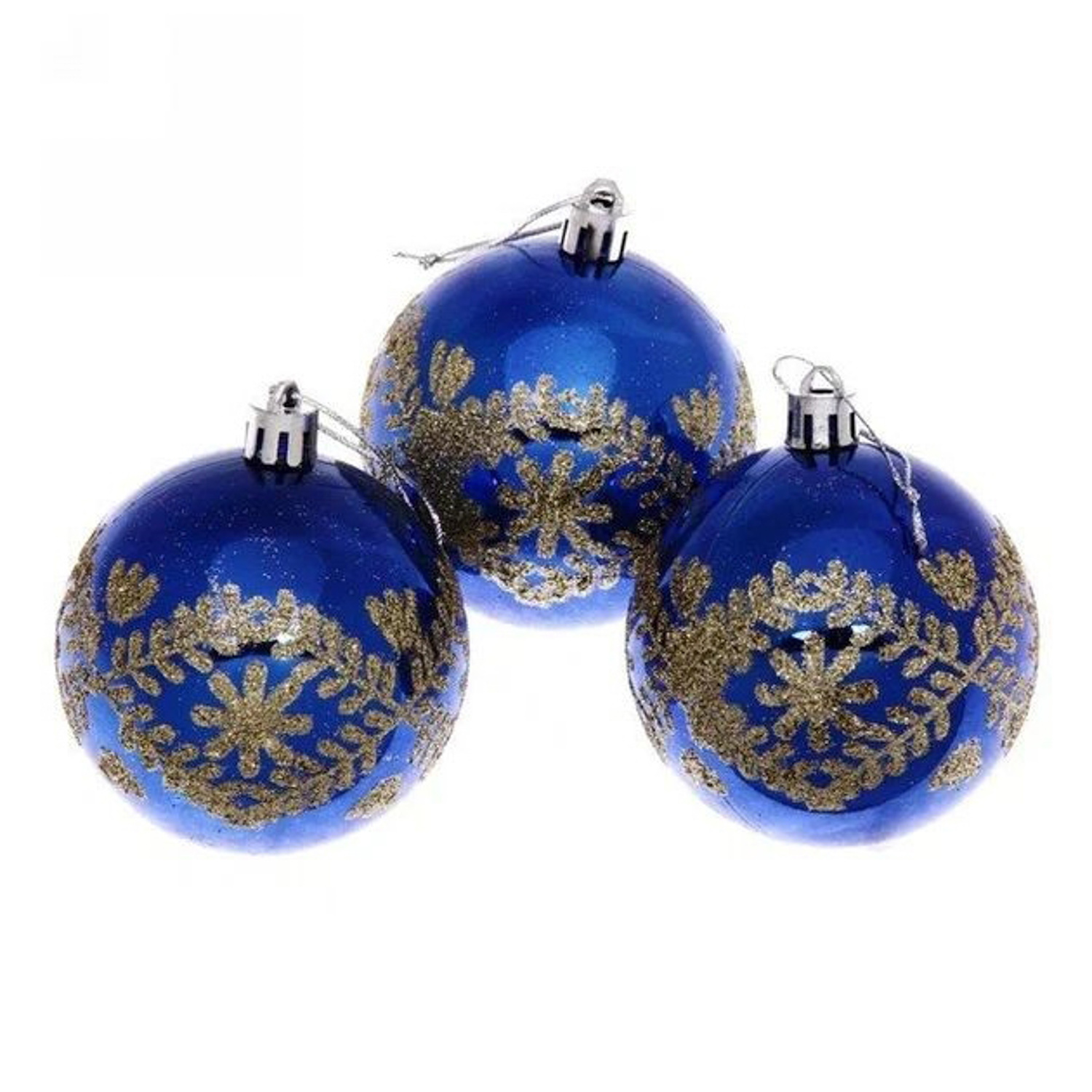 Новогодние шары 7см (набор 3шт) "Хвойные веточки", синий/золото