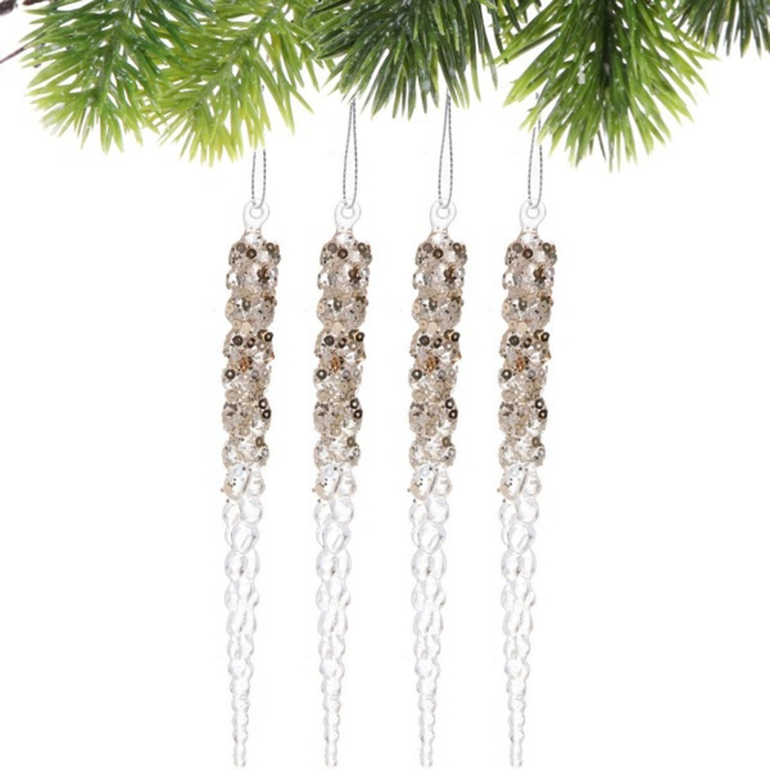 Подвеска "Хрустальная сосулька" 18 см (набор 4 шт), Шампань