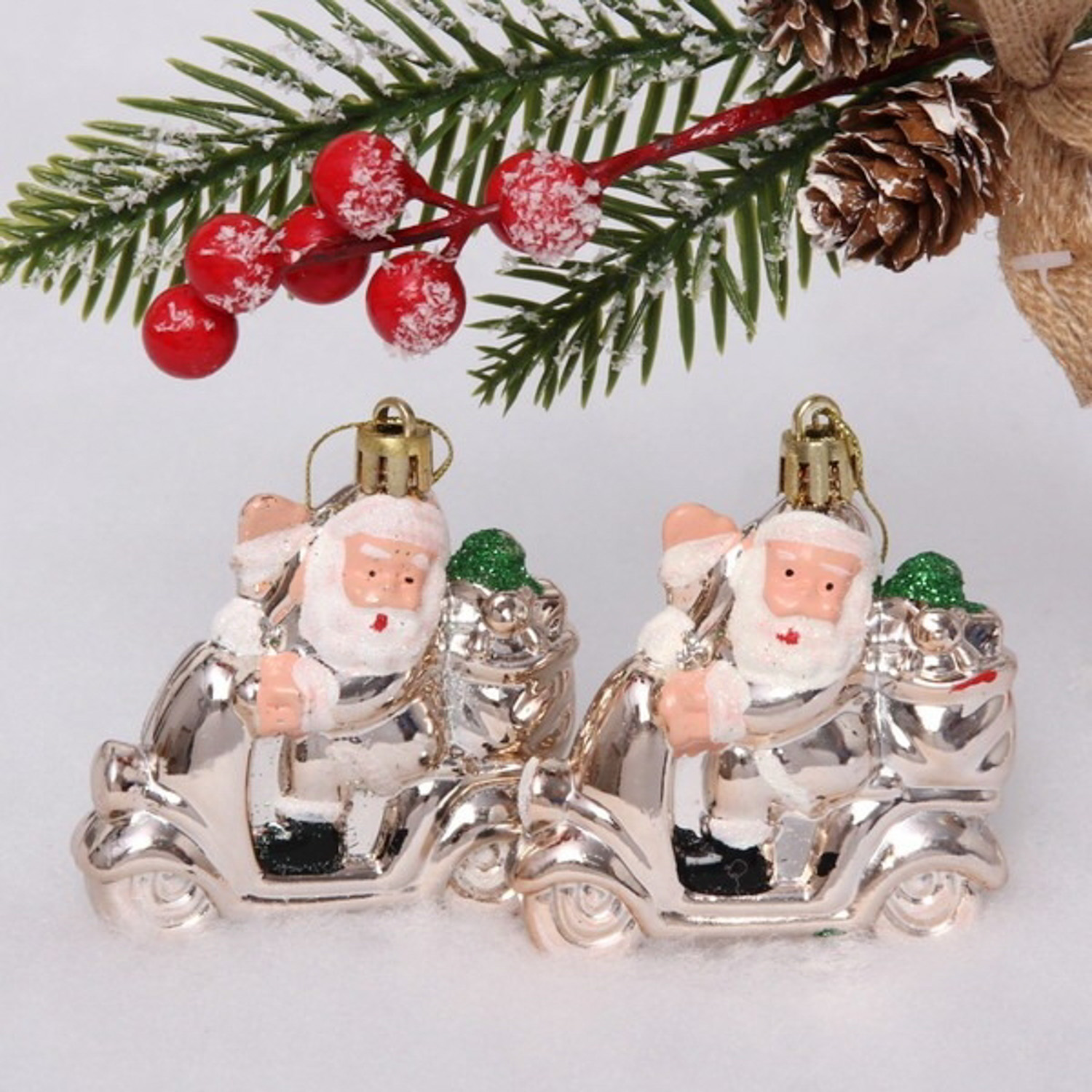 яяяЁлочная игрушка "Дед Мороз в машине" (2 шт) 7,1*2,7*7,8 см, шампань