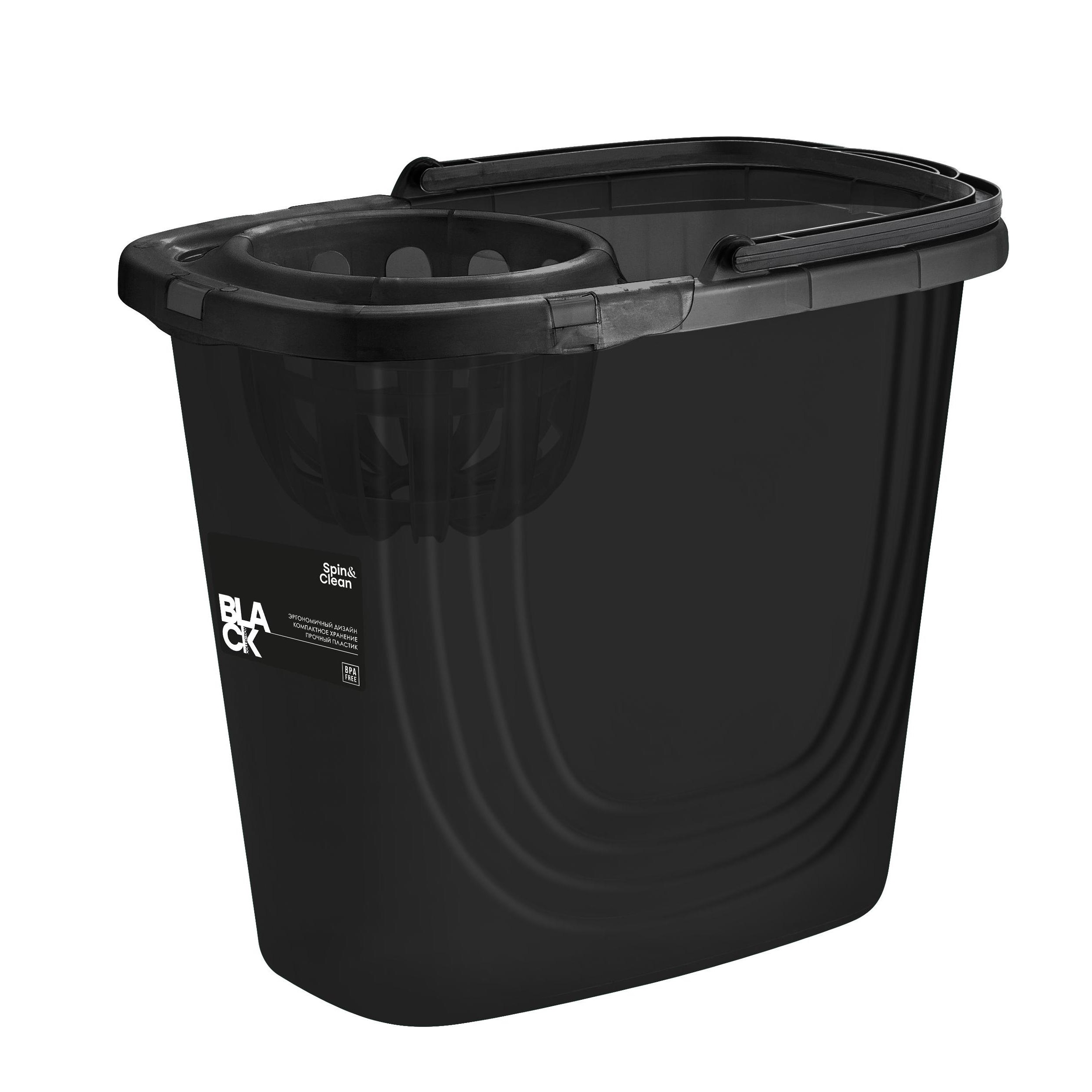 Ведро д/мытья пола пластм. со вставкой для Отжима 10л прямоуг. "Black" SC111810621 "Spin Clean"*1/9